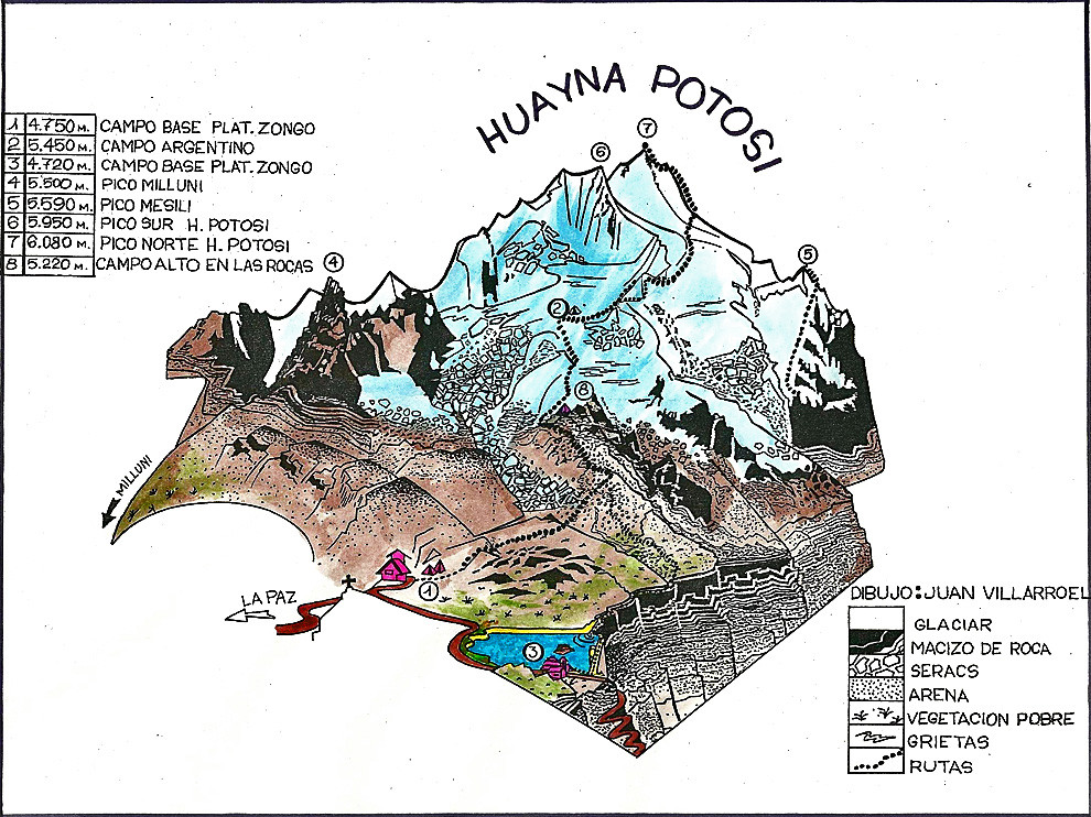 DAY 8: CLIMB HUAYNA POTOSI. 6088m/19968 ft high. Normal Route. 6 hour climb. Return to La Paz. Night in hotel. End of services.