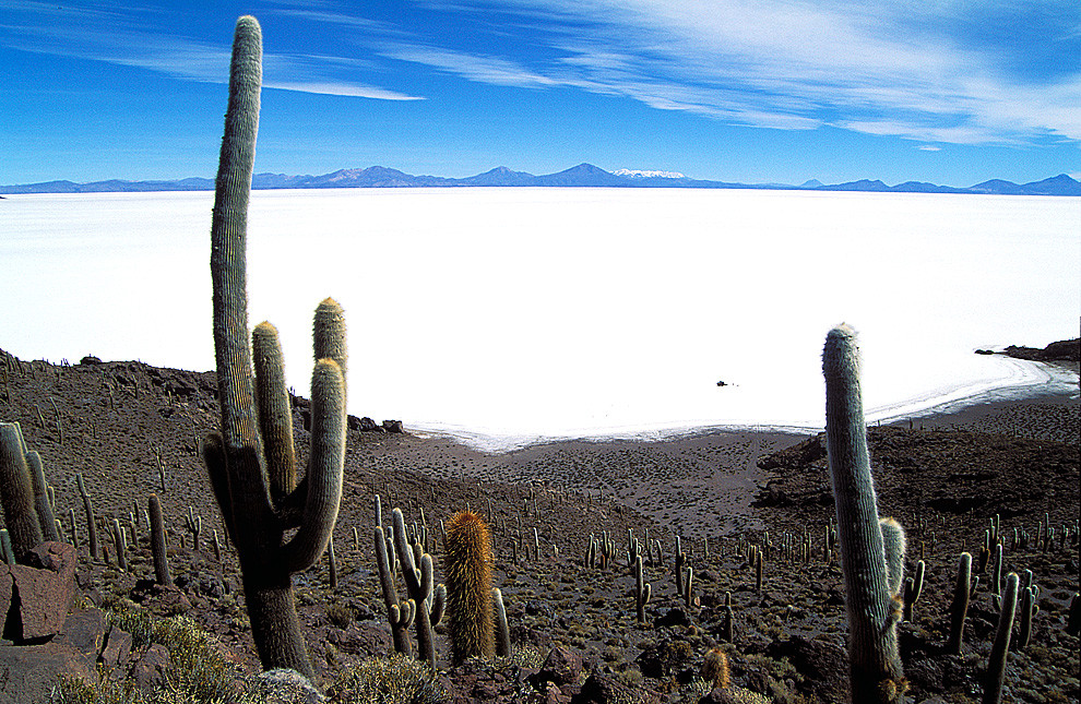 The volcanoes rise over colourful deserts and salt fields where pink flamingos can also be found. The natural beauty and the culture of Chipayas and Carangas, will all make this unmissable trip feel like an "austral Tibet". The Uyuni salt flat consists of a compact crystallized crust 10 metres thick that expands for more than 10,500 square kilometres. The microclimates give birth to the endemic types of polylepis trees and lepidophyllum bushes which form the highest forest of the world. We will move from La Paz in 4X4 cars fully equipped towards the Bolivian Atacama. We will drive on abandoned miner's roads and tracks. Hike to the crater of volcanoes, forests of keñua trees and set foot on the salt flat of Uyuni.