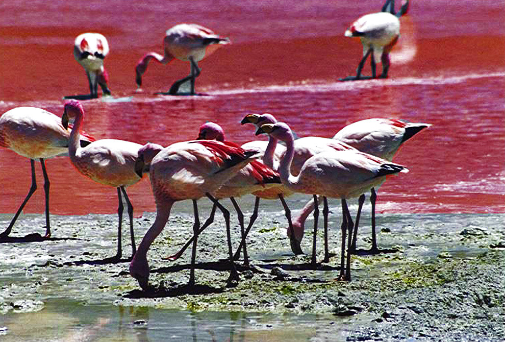 DAY 3: Move through the desert of Siloli and Laguna Colorada. Lodge.